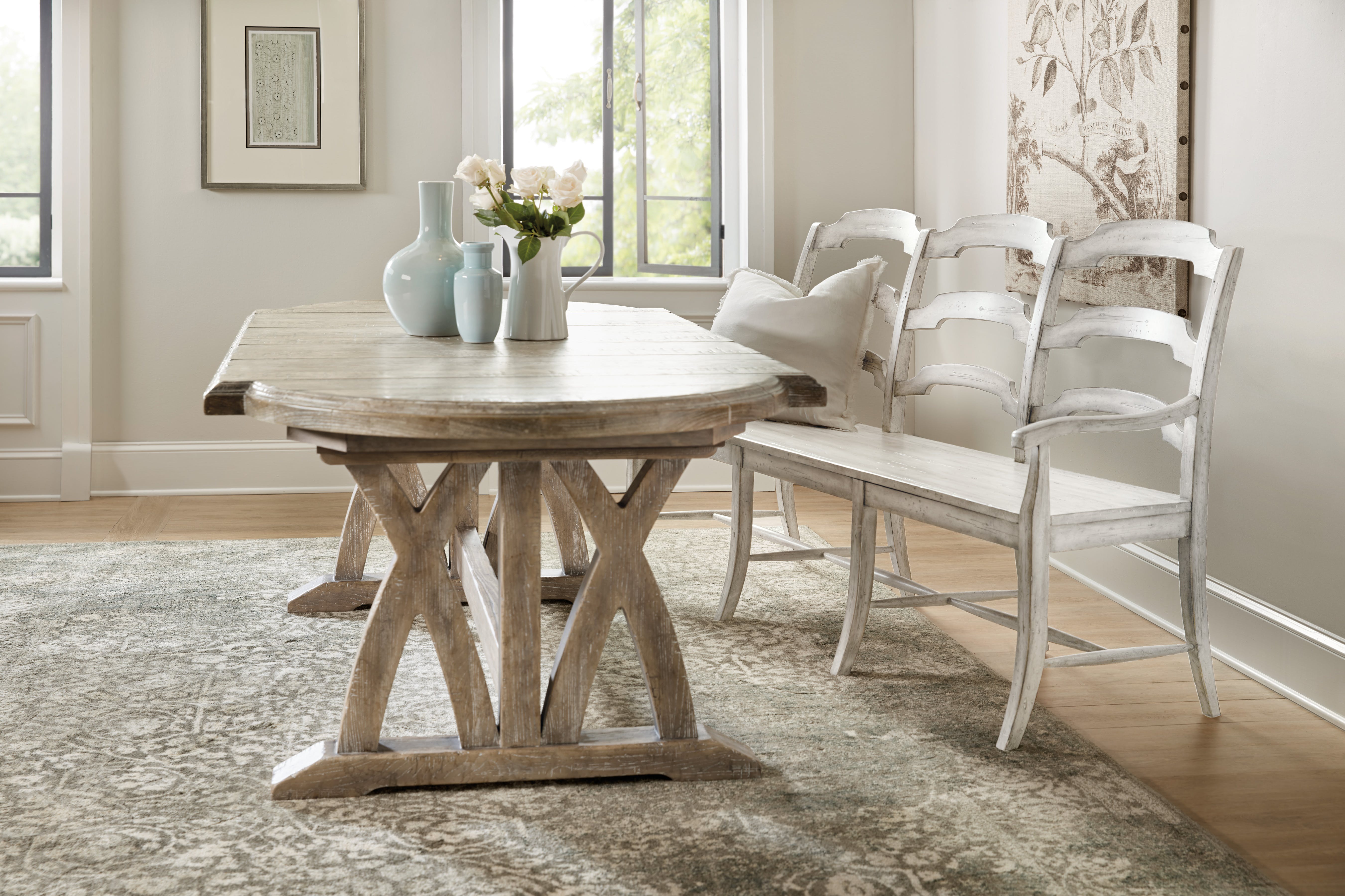 Boheme Colibri 88" Trestle Dining Table with one 20" Leaf